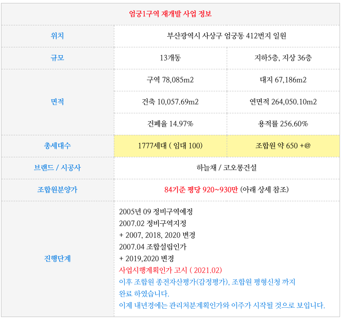 엄궁1구역 및 엄궁3구역에 관심이 있는 분들은 연락주시면 자세히 설명 드리겠습니다.