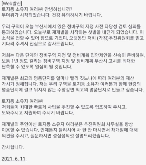 (가칭) 수영망미 (수영강변) 재개발 예정지 에 대해 궁금하신 점은 연락주시면 자세히 설명 드리겠습니다.