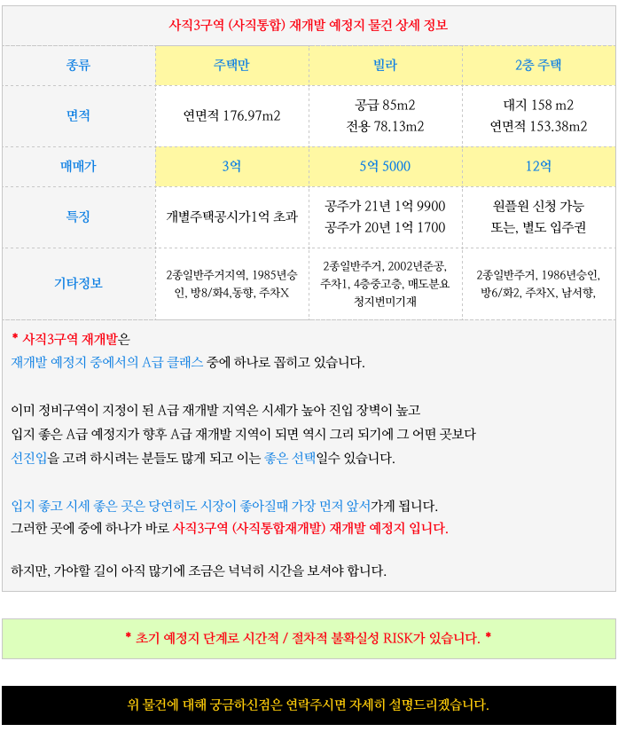사직3구역 (사직통합재개발) 재개발 예정지 물건을 업데이트해 드리겠습니다.