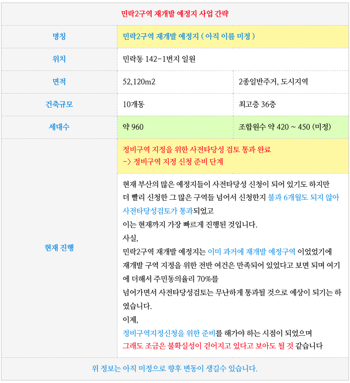 민락2구역 재개발 예정지의 보다 자세한 사항은 아래 페이지를 통해 확인이 가능하십니다.