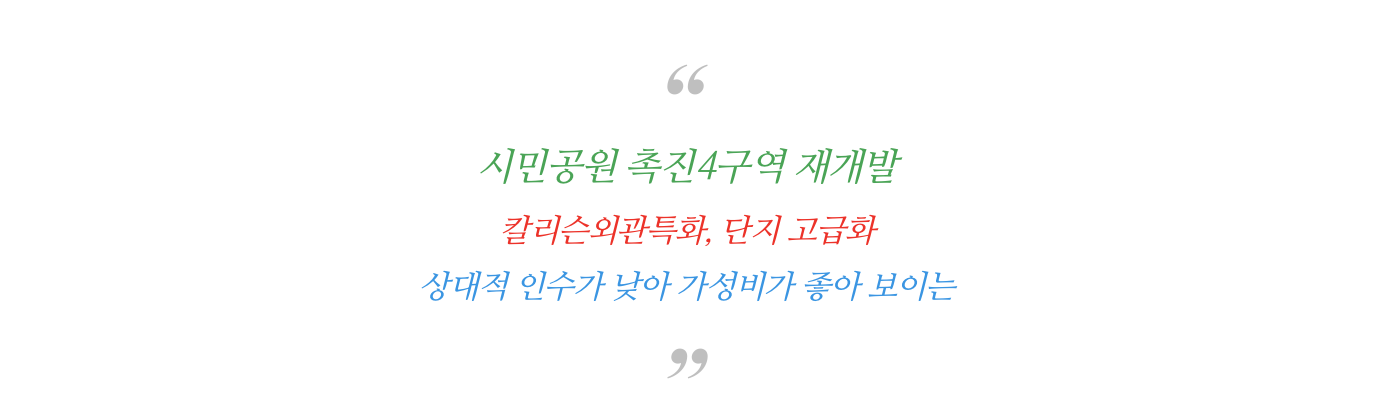 가성비 좋은 시민공원 촉진4구역 재개발 물건 정보를 업데이트 하여 소개해 드리겠습니다.
