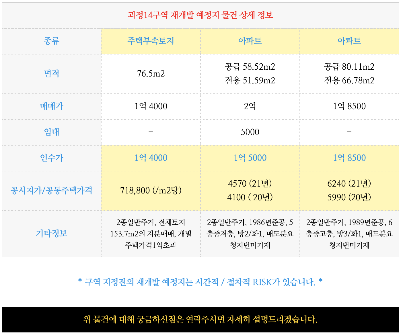 (가칭) 괴정 14구역 재개발 예정지 물건 정보를 업데이트 하여 드리도록 하겠습니다.