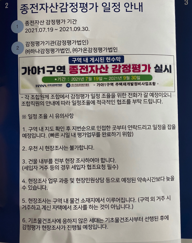 가야1구역 재개발 조합원 종전자산 감정평가 진행중 & 물건