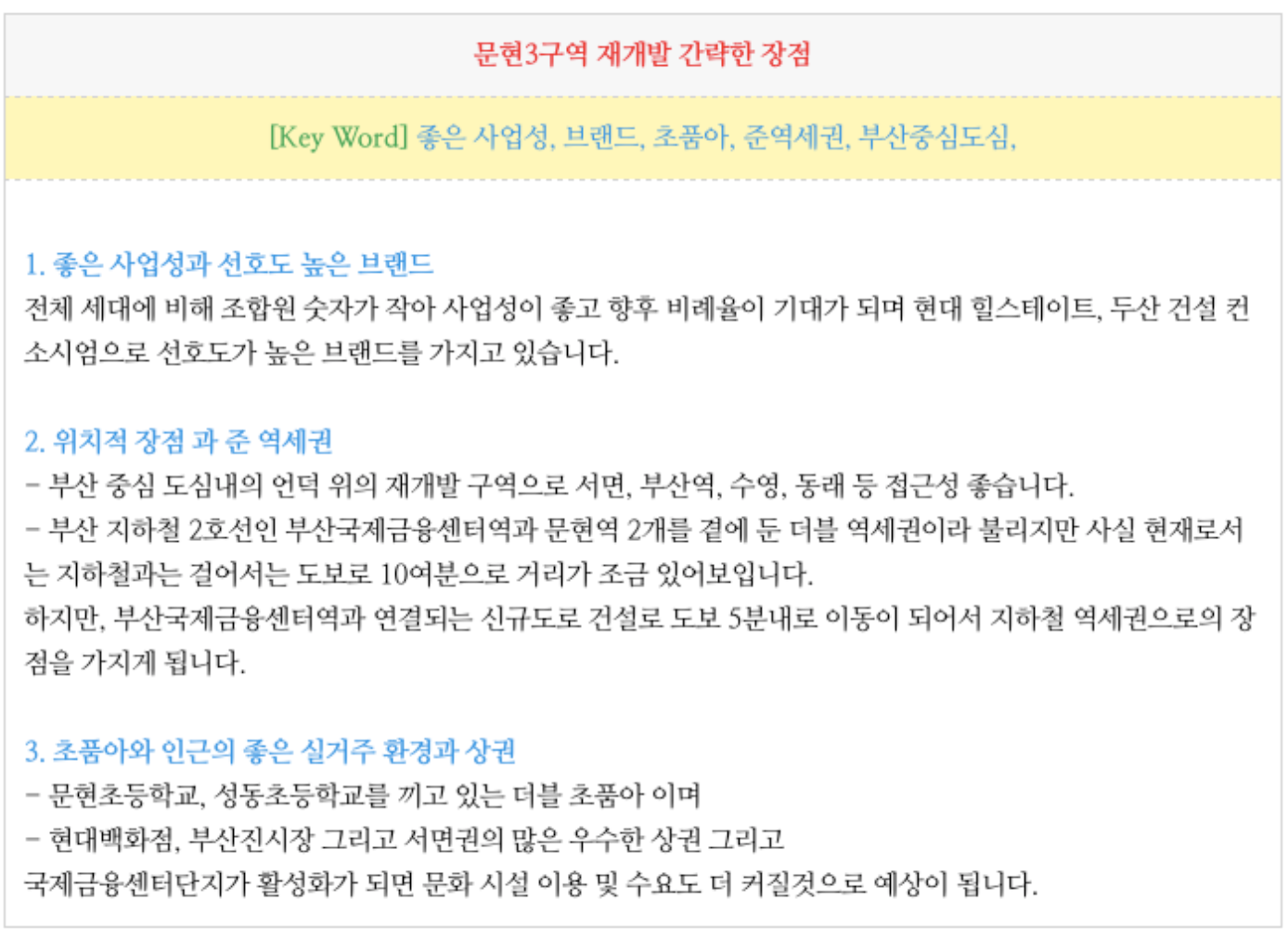 매력적인 문현3구역 재개발 (고급특화+조분가+후분양) 진행과 물건