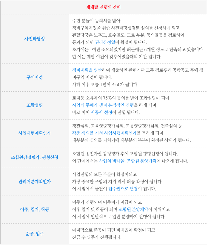사전타당성부터 ~ 관리처분 ,이주 철거 착공까지 이어지는 기나긴 여정이고 시간적 불확실성이 있습니다.
