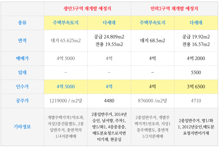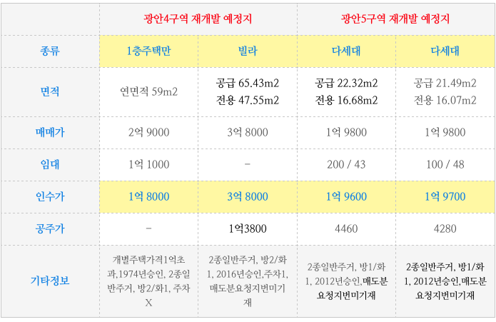 수영구 광안동 각 예정지 구역별 물건 정보를 소개해 드리겠습니다.