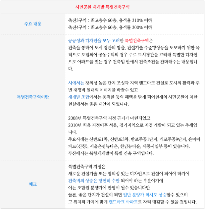 부산 시민공원 재정비 촉진4구역, 촉진3구역의 통일적인 특징 을 간략히 정리해 드립니다.