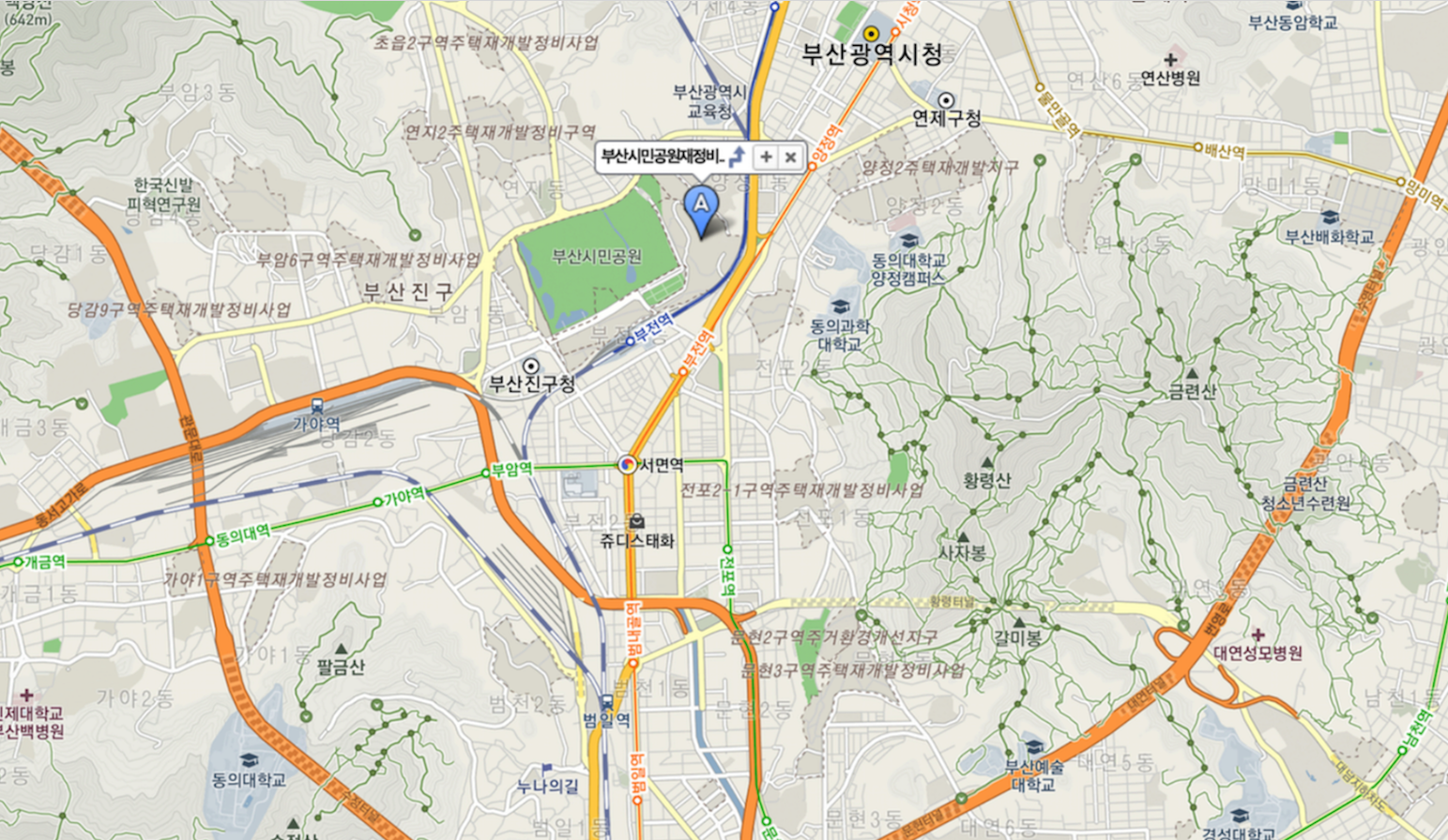 부산 중심도심에 위치하고 도심내 최대 공원으로 불리는 시민공원 을 전세대 뷰 배치로 건설 예정입니다.