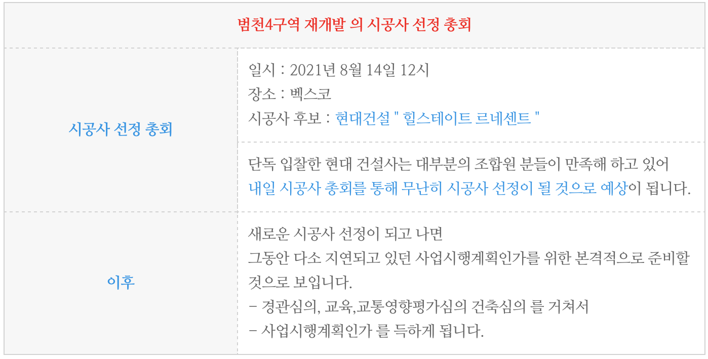 " 범천4구역 재개발 " 현대건설 시공사선정총회 소식 & 최소인수가 뚜껑 물건