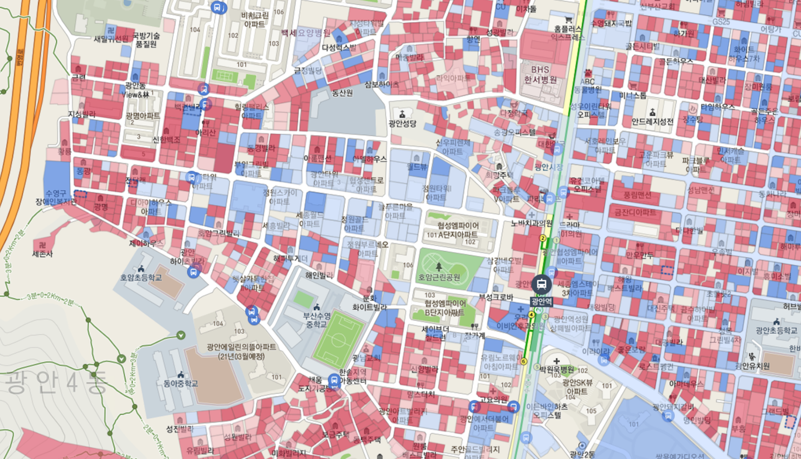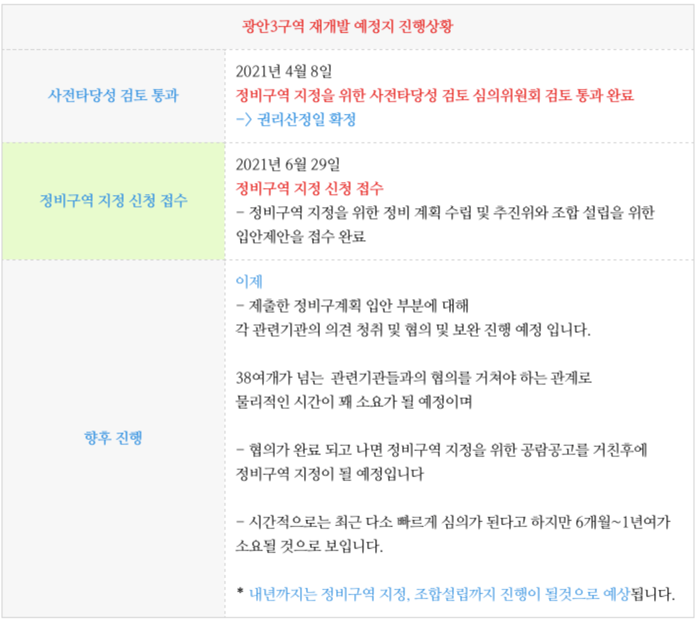 수영구 광안동의 아주 많은 재개발 예정지와는 상당한 진행 시간의 차이가 나는 것을 물론