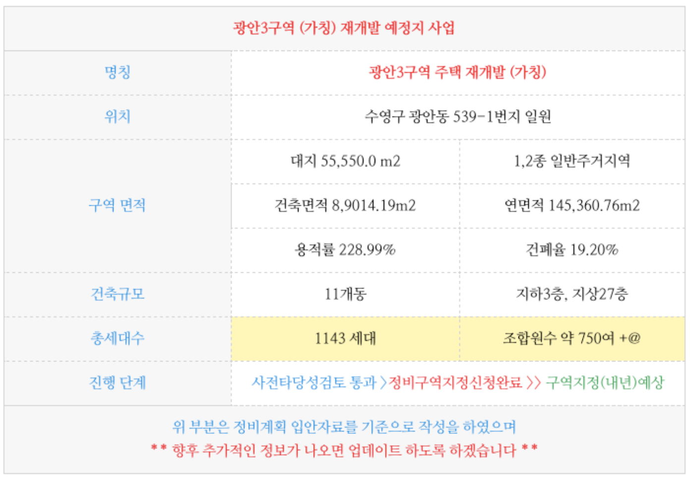 광안3구역 (가칭) 재개발 예정지 보다 자세한 정보는 아래 페이지에서 확인 부탁드립니다.