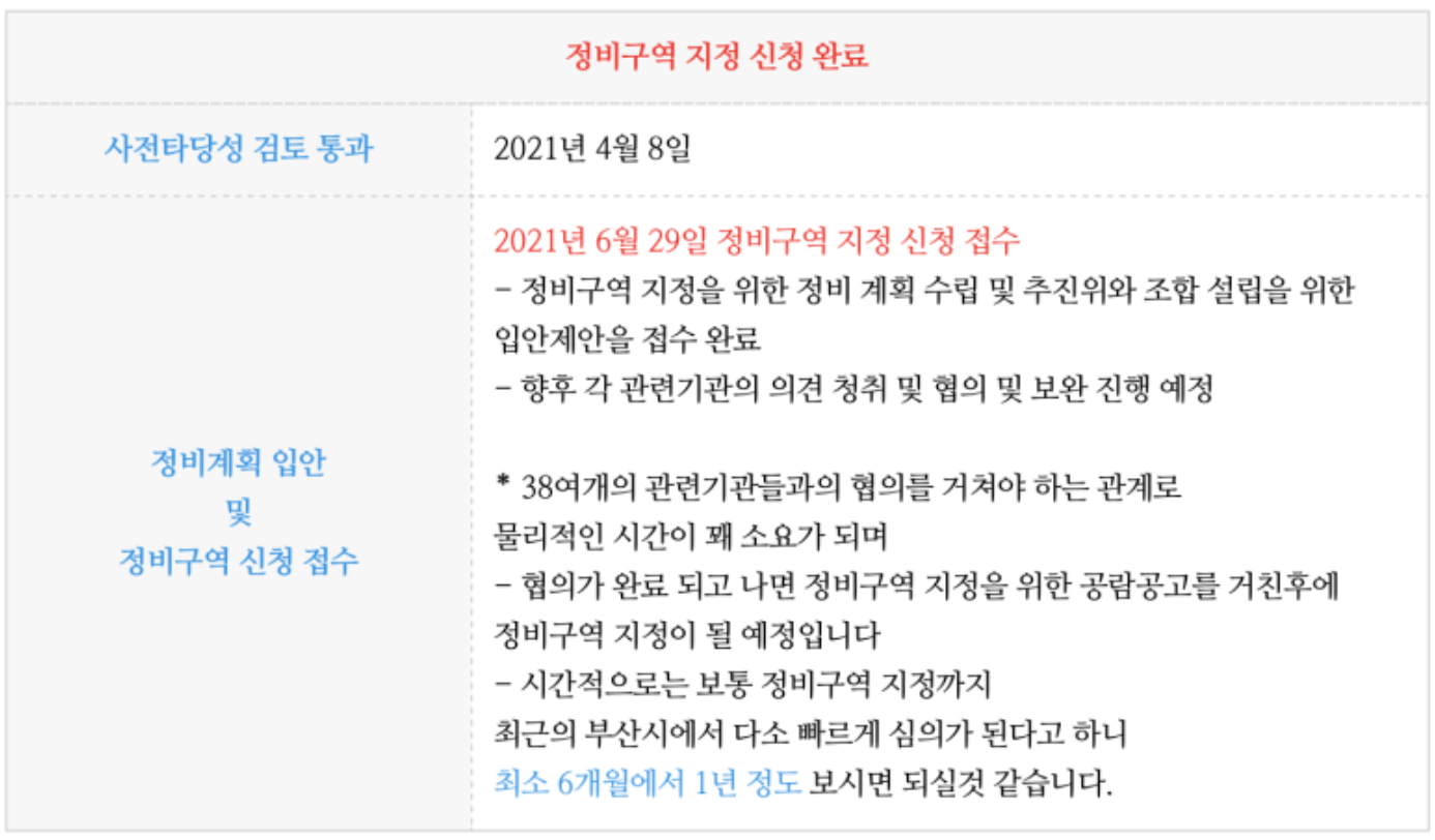 이미 사전타당성통과 > 정비구역지정 신청 까지 진행이 되었기에 상대적으로 안정적으로 보입니다.