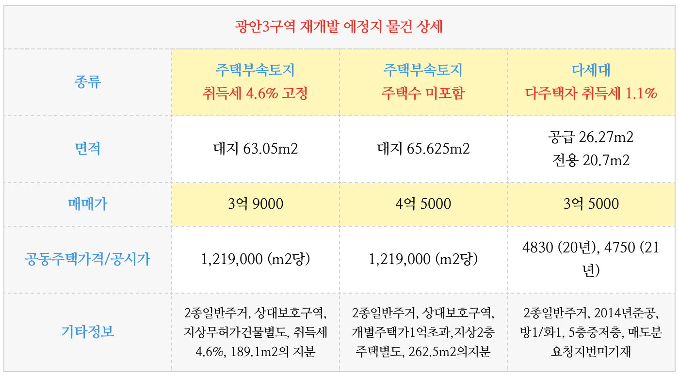 입지좋은 광안3구역 재개발 예정지 주택부속토지와 다세대 주택등 좋은 물건 소개해 드립니다.