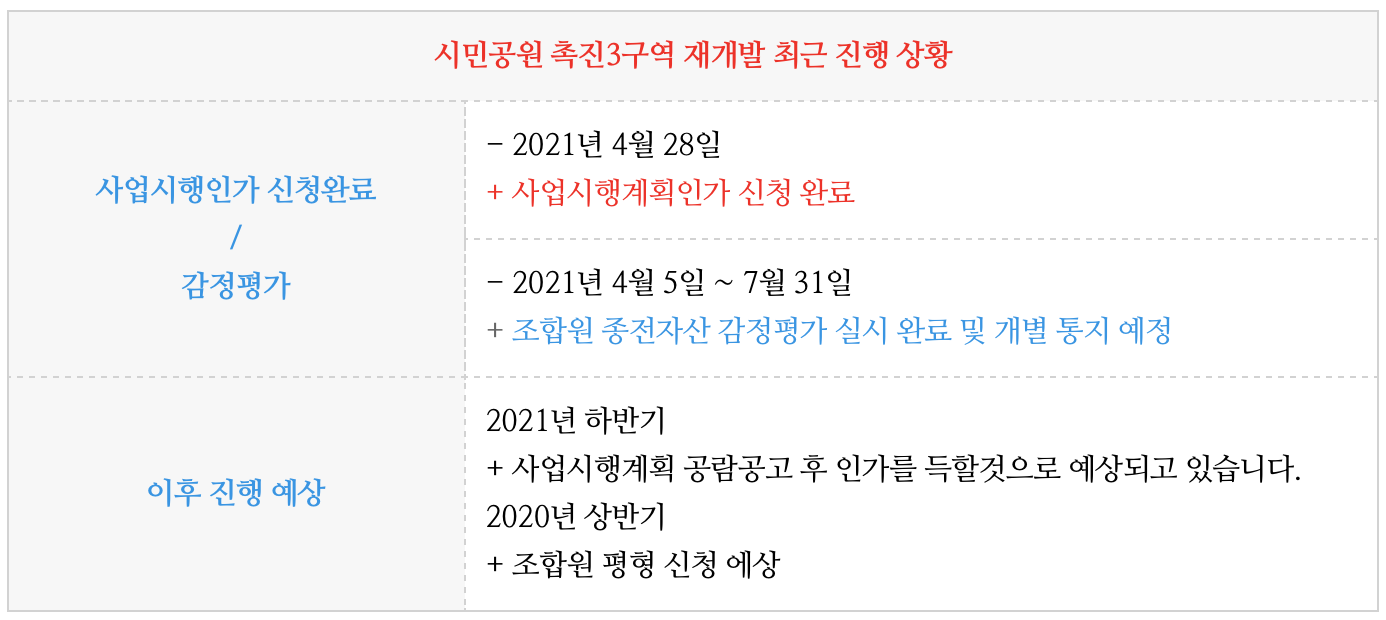 시민공원 촉진3구역 재개발의 최근 진행상황은 간략히 정리 드립니다.