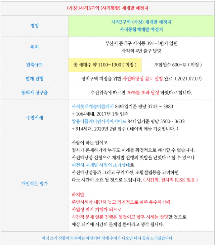 사직3구역 ( 사직통합 ) 재개발 예정지의 추가적인 평가등의 내용은 아래 페이지를 참고하시면 되십니다.