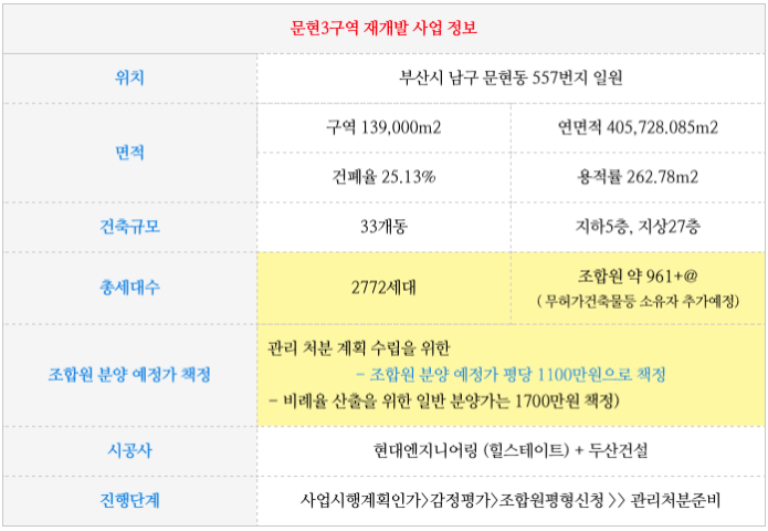 문현3구역 재개발의 진행상황과 타입별 세대수 등은 아래 페이지를 통해 확인하시면 되십니다.