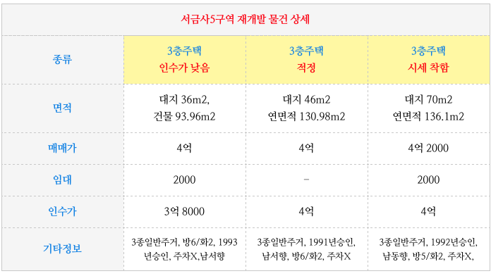 그 이유는 부산 전역의 전반 시세가 많이 상승하게 되면서 3억 언더의 인수가로 접근할수 있는 구역이 많지 않으며 그 중에서 서금사5구역의 입지나 향후 가치등으로 인해 선택을 많이 받게 되었었습니다.