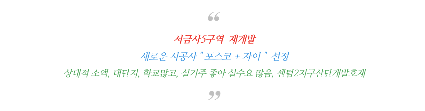 - 서금사5구역 재개발과는 위치도 바로 붙어 있고 전반적으로 진행도 비슷합니다.