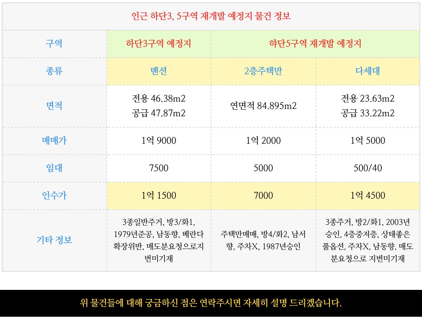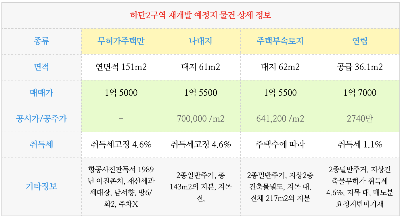 하단2구역 재개발 예정지의 물건 정보 부터 먼저 업데이트 하여 드리겠습니다.