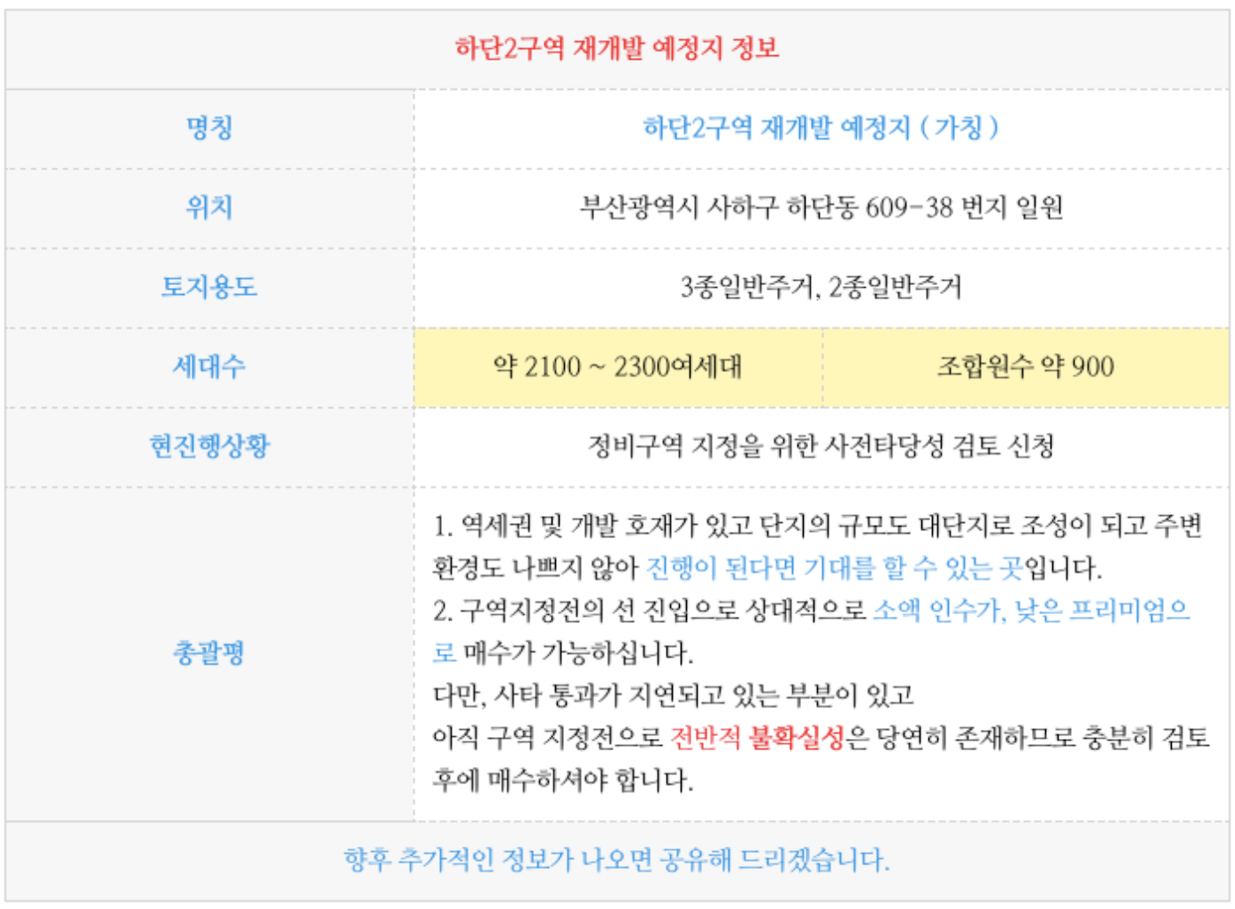 사하구 하단2구역 재개발 예정지에 대해 궁금 하신 점은 연락주시면 자세히 설명 드리겠습니다.