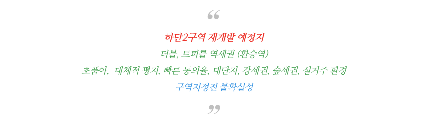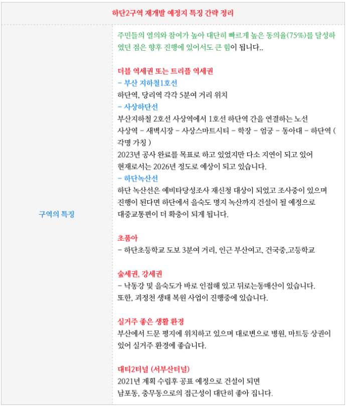 하단2구역 재개발의 주변 상황과 특징들을 간략히 정리하였습니다.