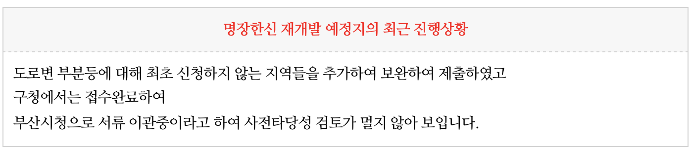 지난 2021년 3월에 정비구역 지정을 위한 사전타당성 심의가 신청이 된 상태이며