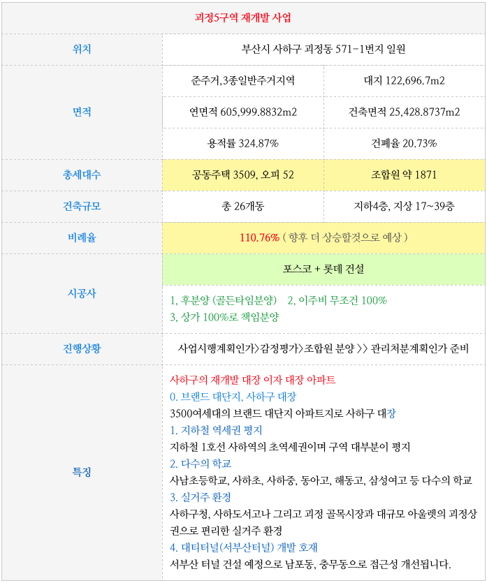 괴정5구역 재개발에 관심이 있으신 분들은 연락주시면 자세히 설명드리겠습니다.