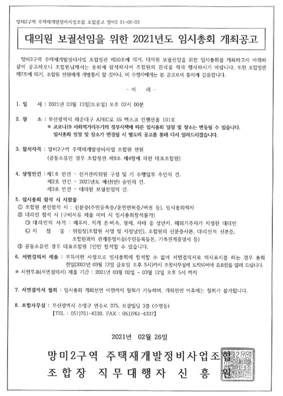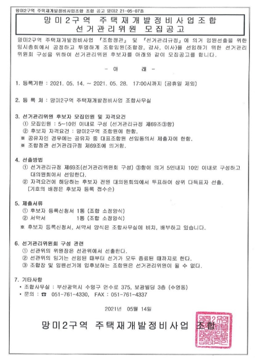 망미2구역 재개발 조합장 선출 소식과 물건을 업데이트 해 드리겠습니다.