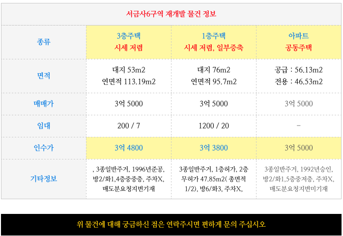 추가로, 서금사6구역 재개발 물건도 같이 소개해 드립니다.