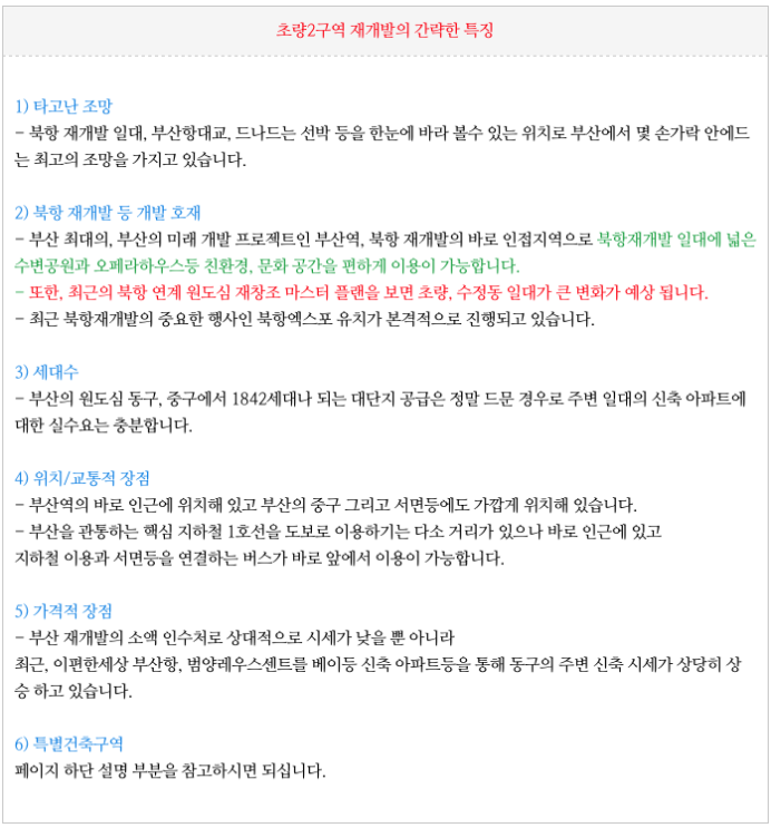 북항 바라 보는 초량2구역 재개발의 간략한 특징을 다시 한번 정리하여 드리겠습니다.