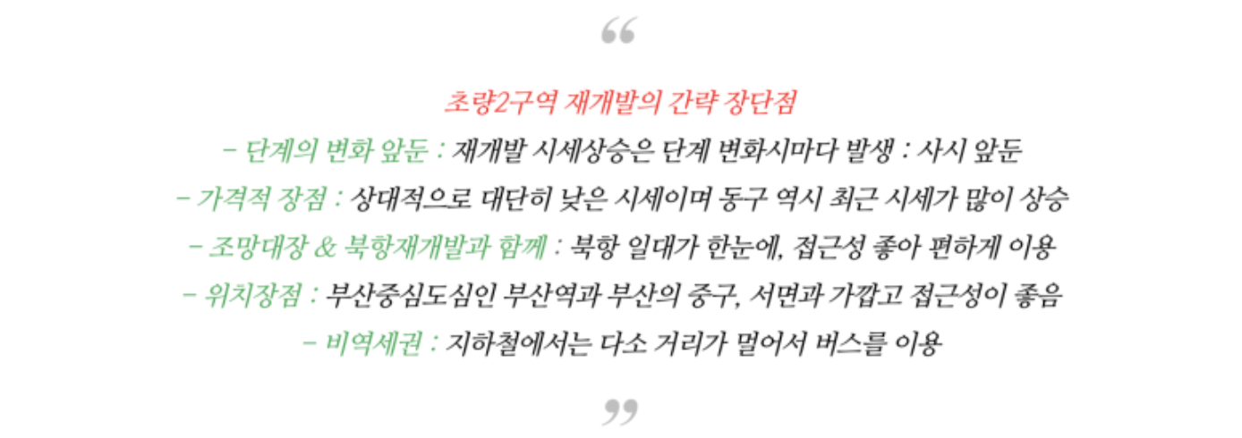 진행대비하여 부산 재개발중 가장 상대적으로 저평가 되어 있는 곳 중에 하나로 생각되는데