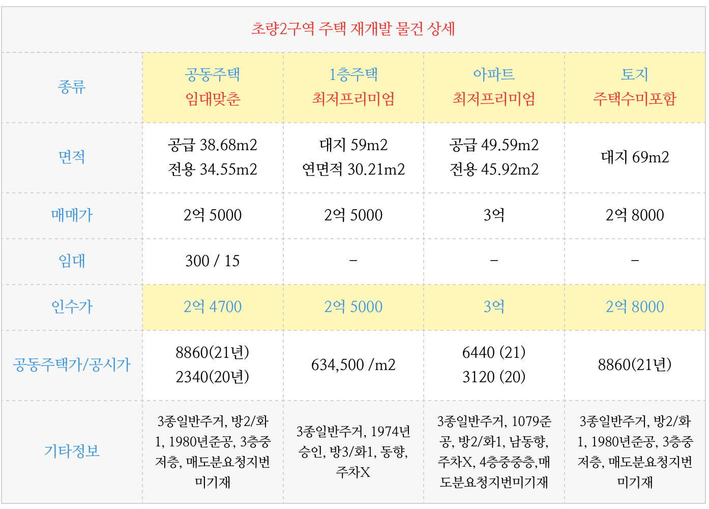 최근의 많은 재개발 예정지들의 프리미엄을 고려하과