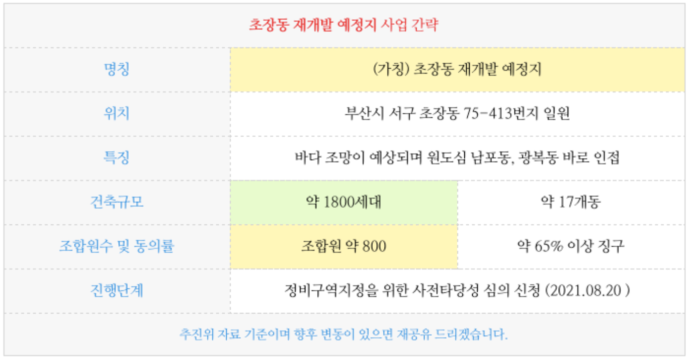 부산 서구로 광복동, 남포동 인근의 초장동 재개발 예정지 물건 정보를 업데이트해 드리겠습니다.