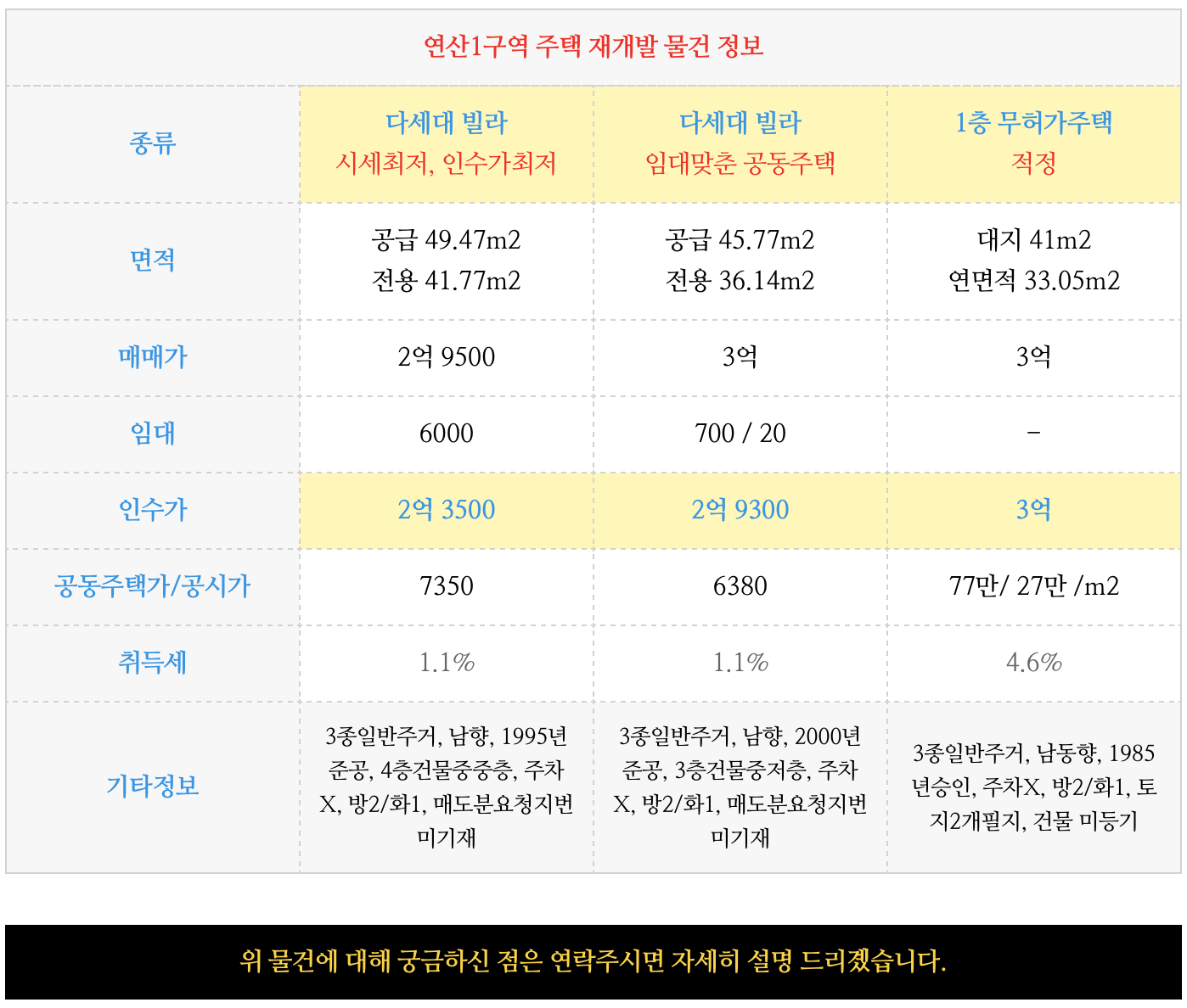 연산1구역 재개발 예정지 인수가 소액 물건을 업데이트 해 드리겠습니다.