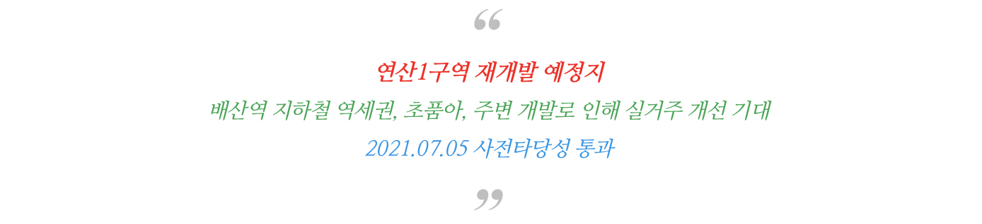 연산1구역 재개발 예정지에 대해 궁금하신 점은 연락주시면 자세히 설명 드리겠습니다.