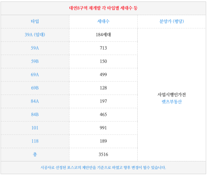 다른 시공사로 선정되거나 포스코로 그대로 가거나 아래 조건이 기준으로 작용할 수 있으니