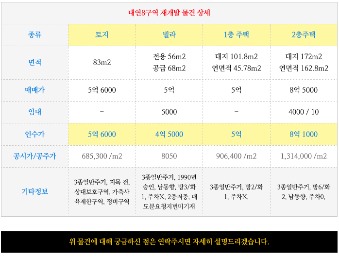 | 연산1구역 재개발 인수가 작은 현 매물들 (0) | 2021.10.13 |