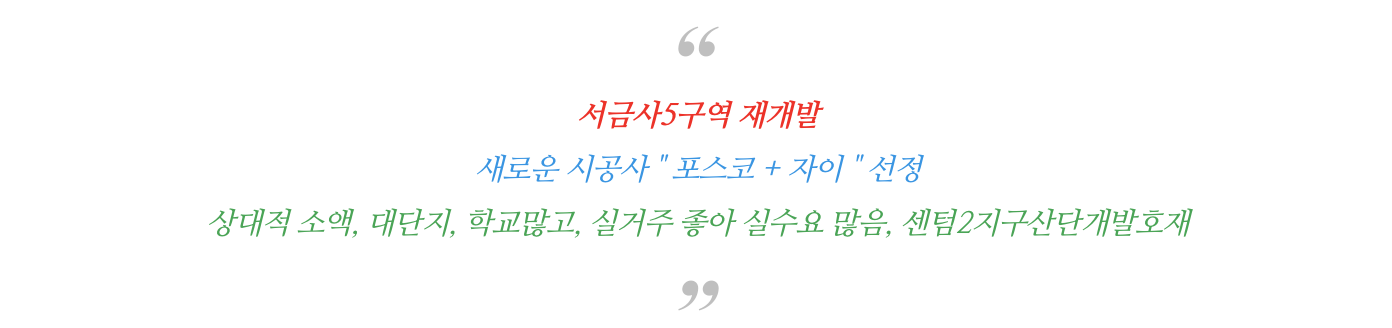 서금사5구역 재개발의 간략한 특징을 정리하였습니다.