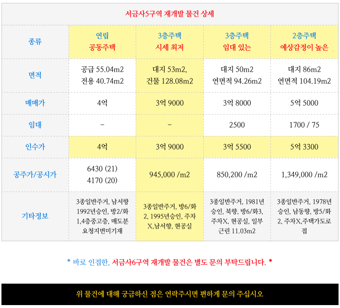 서금사5구역 재개발 현재 가능 물건을 업데이트해 드리겠습니다.