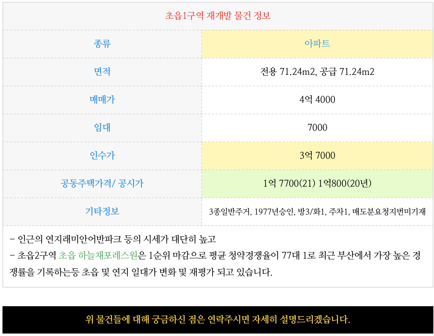 초읍1구역 재개발의 물건 정보 업데이트 하여 드리겠습니다.