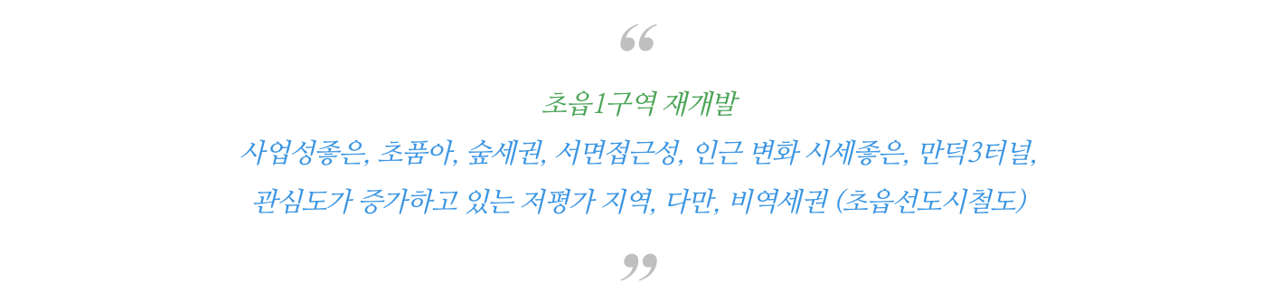 재평가 할만한 초읍1구역 재개발 물건을 업데이트해 드리겠습니다.