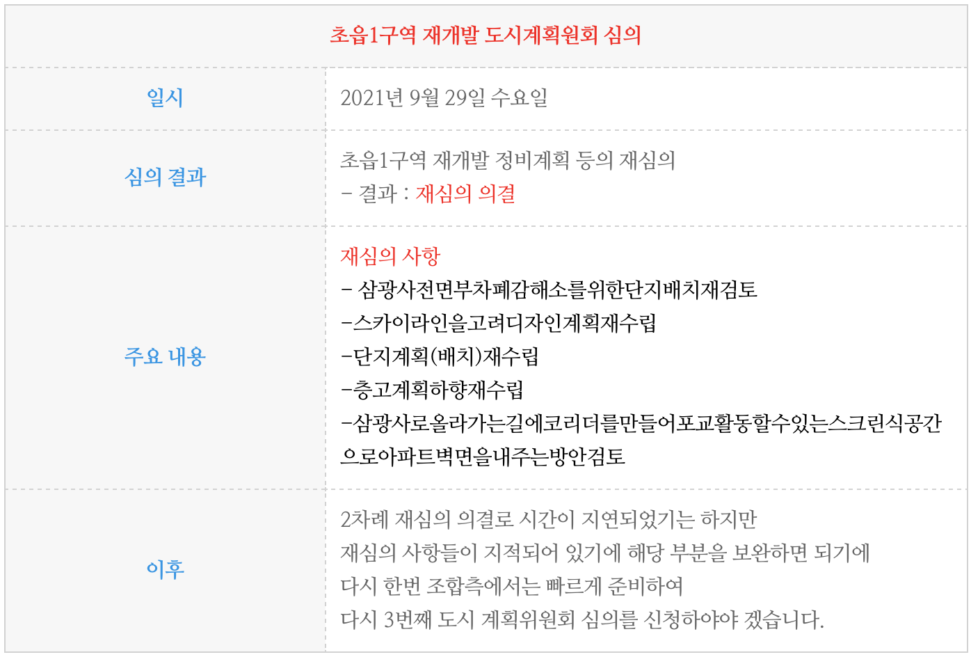 지난 9월 29일에 있었던 제9회 도시계획위원회 심의 결과 부분 입니다.