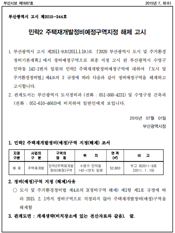 수영구 민락2구역 재개발 예정지는