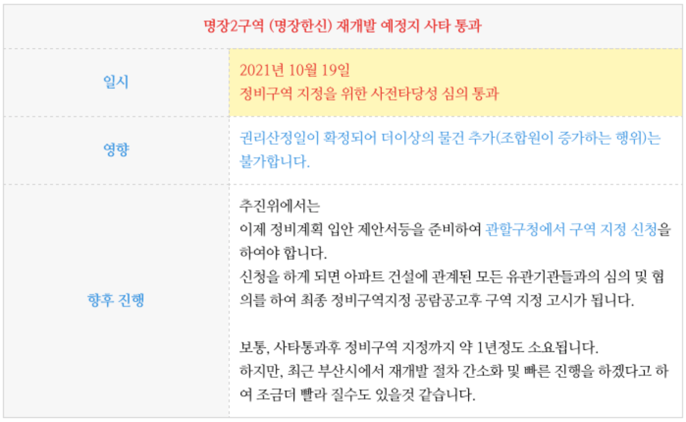 명장2구역 (명장한신) 재개발 예정지 최근 소식 으로