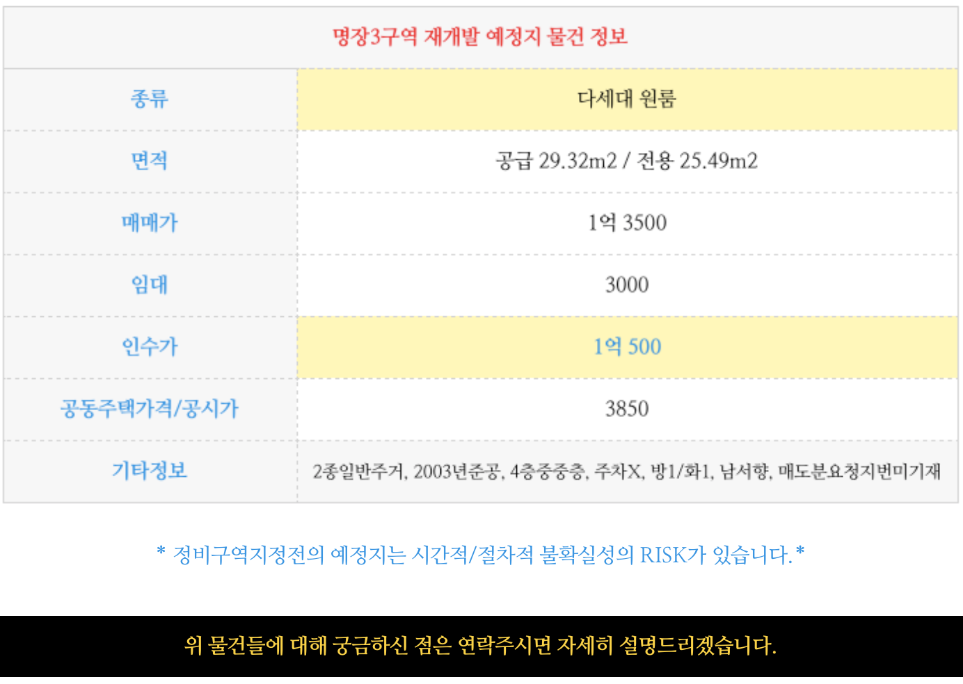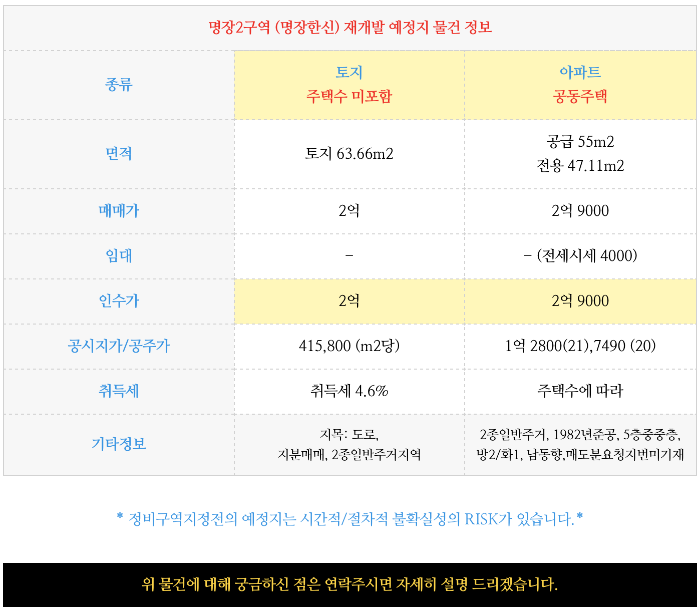명장2구역 (명장한신) 재개발 예정지의 물건 정보 먼저 업데이트 해 드리겠습니다.