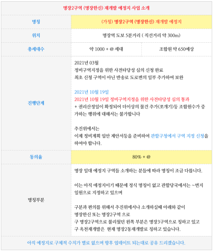 명장2구역 (명장한신) 재개발 예정지 사타 통과 소식과 가능 물건을 새롭게 소개해 드리겠습니다.