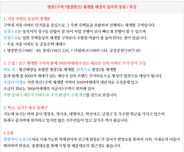 명장2구역 (명장한신) 재개발 예정지의 입지적 특징을 정리해 드립니다.
