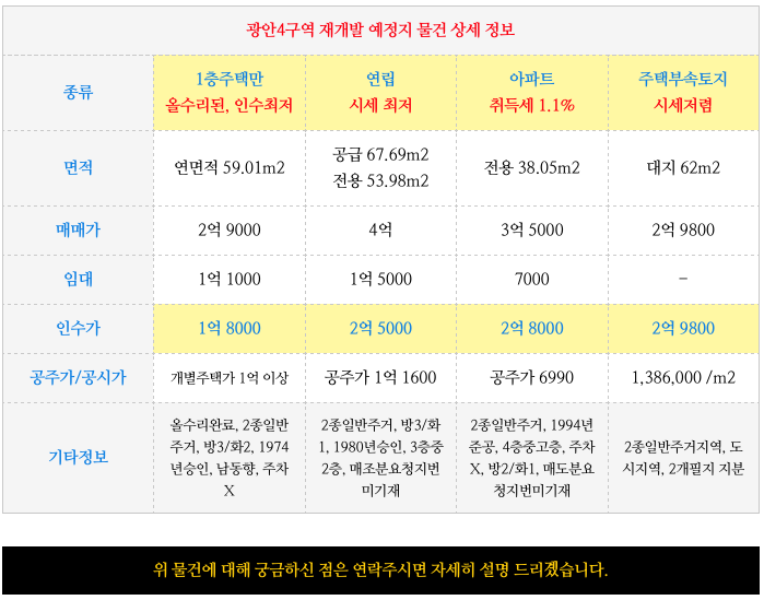 " 광안4구역 재개발 " - 토지,연립, 아파트등 괜찮은 매물 : 사타신청된 예정지