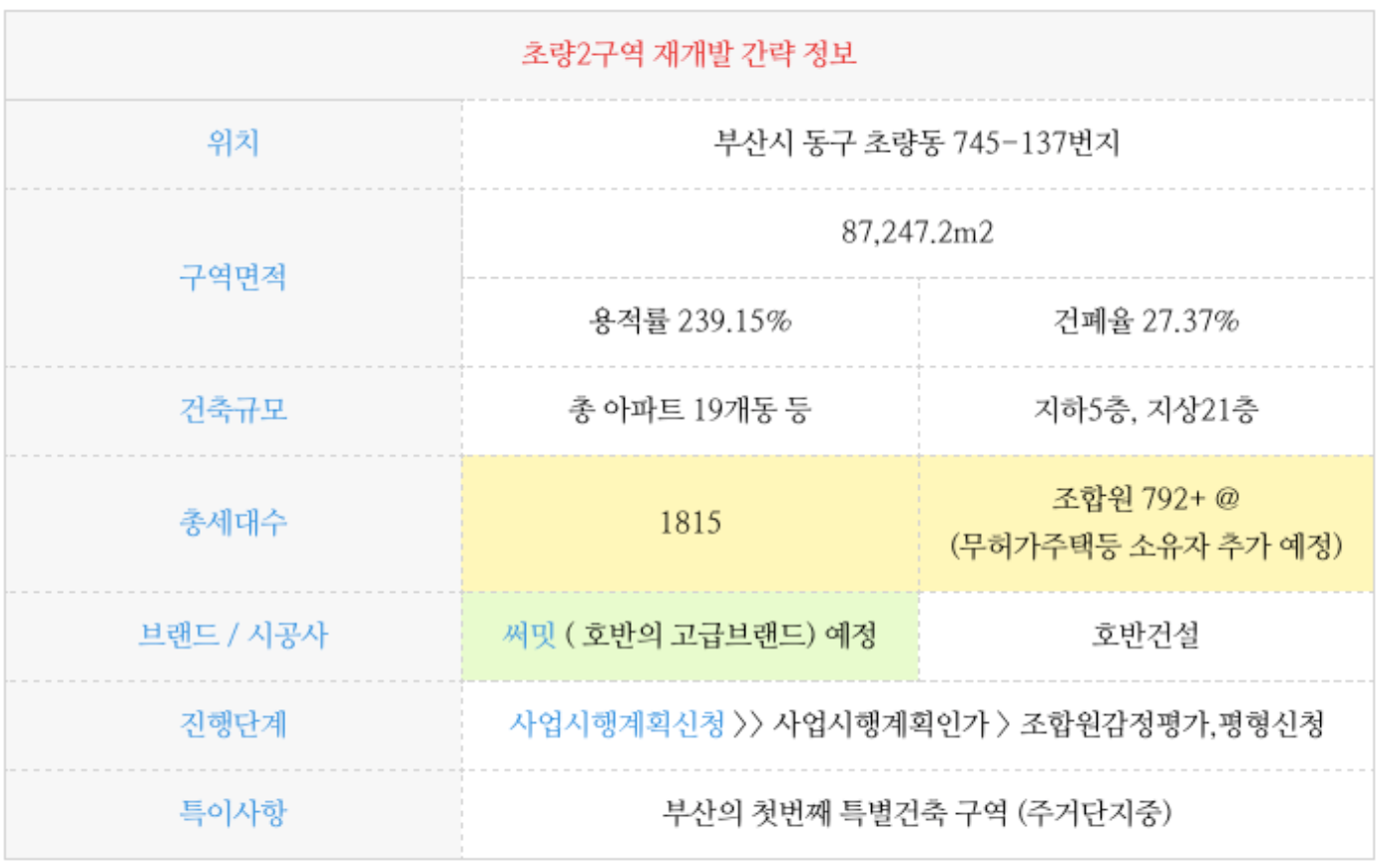 초량2구역 재개발의 진행상황과 타입별세대수 등은 아래 페이지를 참고 부탁드립니다.