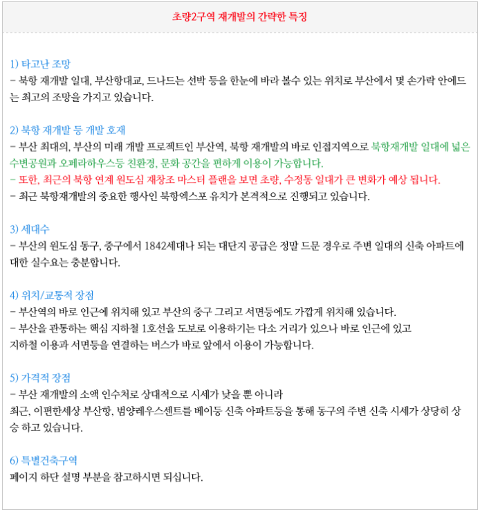 초량2구역 재개발의 특징을 간략히 다시 한번 정리하여 드리겠습니다.
